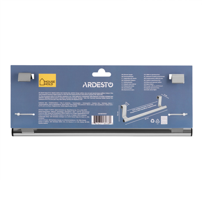 Вішак для душової кабіни ARDESTO Vigor 30см, нержавіюча сталь, ЕВА
