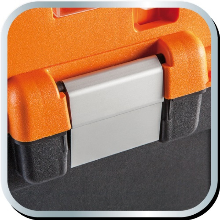 Ящик для інструменту NEO TOOLS. Практичний і міцний ящик для інструменту виготовлений з міцної пластмаси, з алюмінієвими замками. Ящик оснащений органайзерами для зберігання дрібних елементів, розкладною внутрішньою секцією і зручною алюмінієвою ручкою для перенесення. Бренд NEO TOOLS виправдовує очікування професіоналів.
