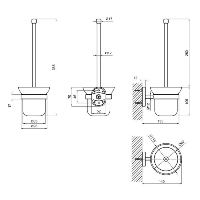 Ершик для туалета Lidz (CRG) 114.05.01 крепится на стену, не подвергается коррозии. Колба под ёршик съемная, благодаря чему уход за ней будет простым и легким. В изделиях используются уплотнительные кольца (прокладки), необходимые для плотного соединения металла и керамики, также препятствующие возникновению шума в результате соприкосновения частей изделия.