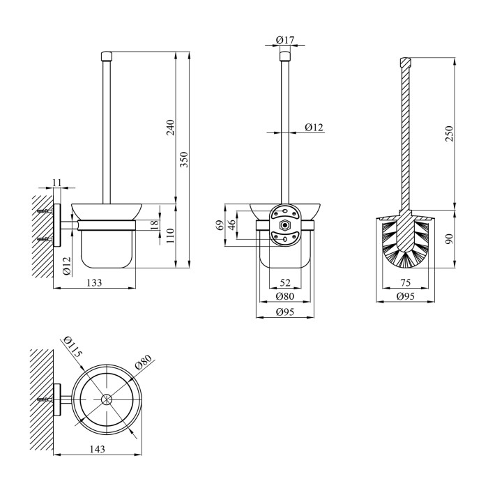 Підлоговий йоржик для туалету KRM Elbe - ACG2910 від Kroner кріпиться на стіну. Колба виготовлена з матового скла, легко знімається й миється. У виробах використовуються кільця ущільнювачів (прокладки), які необхідні для щільного з'єднання металу та кераміки, а також перешкоджають виникненню шуму внаслідок зіткнення частин виробу.
