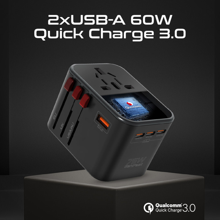 TripMate-GaN75 – покращена версія мережевого перехідника TripMate-GaN65 від Promate. Ще більше потужності, ще більше портів у компактному корпусі завдяки GanFast технології. Заряджайте все що завгодно під час подорожей світом.