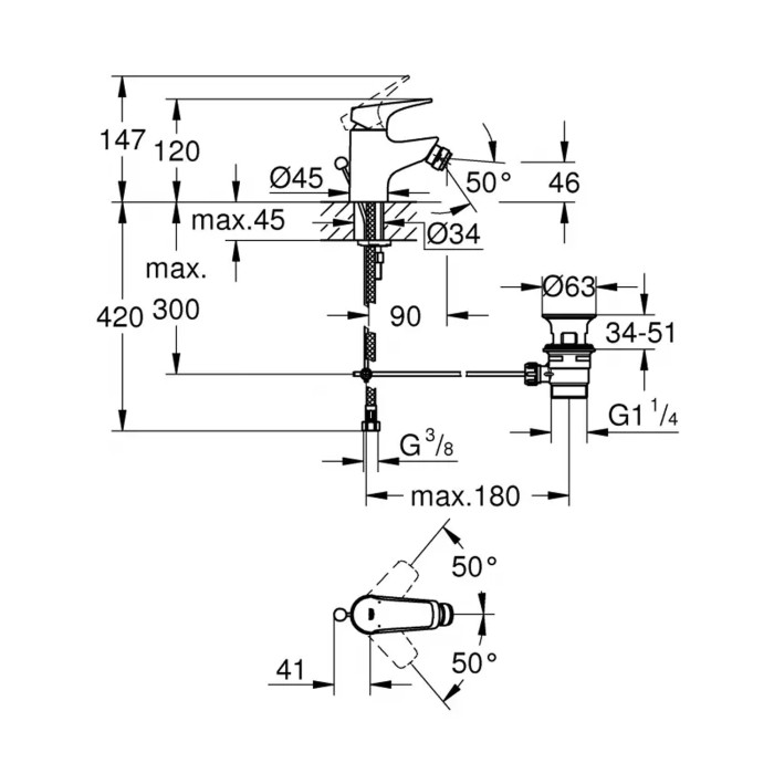 Змішувач для біде Grohe Start Flow 23770000 з донним клапаном