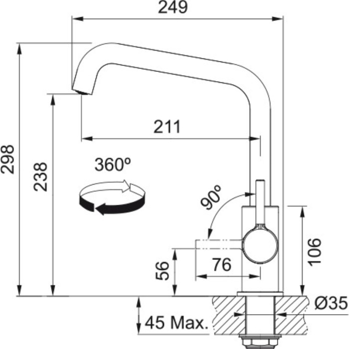 Змішувач для кухні Franke Lina U, довж.виливу - 211мм, поворотний, 1важіль, чорний матовий