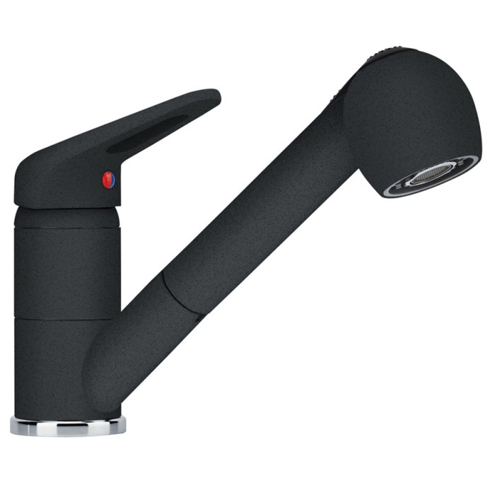 Врізний одноважільний кухонний змішувач Franke Novara-Plus Pull Out (115.0470.675) онікс з висувним зливом, важелем зверху та багаторівневим аератором.