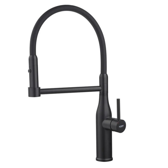 Змішувач для кухні Koer KI-70005-05 з чорним силіконовим виливом (нерж. сталь) (KR5005)