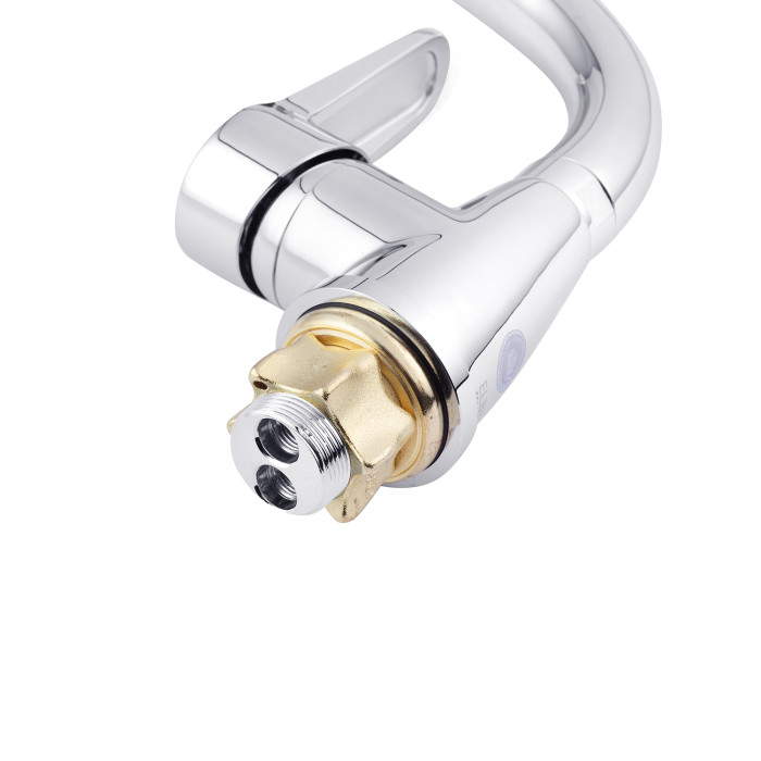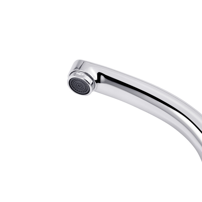 Змішувач для кухні Kroner KRM Elbe - C031 - ідеальний вибір для вашої кухні. Виготовлений з високоякісного силуміну, він гарантує міцність та довговічність. Має привабливий глянцевий хромований колір, що додає йому елегантності. Змішувач оснащений картриджним механізмом змішування, що дозволяє зручно регулювати температуру води. Його унікальна С-подібна форма виливу забезпечує зручність під час наповнення посуду або миття продуктів. Насолоджуйтесь комфортом і зручністю використання разом з Kroner.