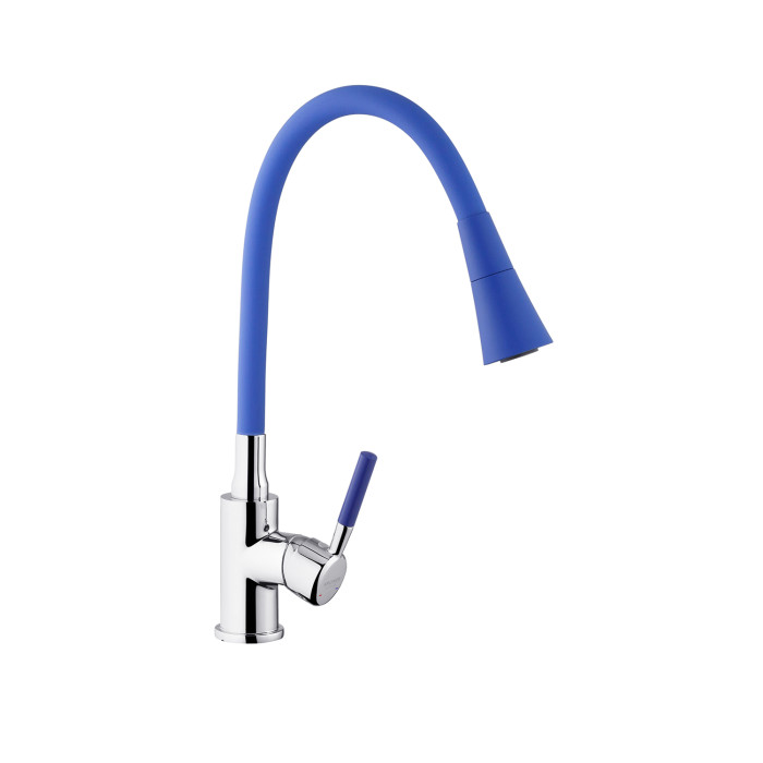 Змішувач для кухні Kroner KRM Kuche - C132BLE - це стильний та функціональний варіант для вашої кухні. Виготовлений з високоякісного силуміну з силіконовим виливом, він поєднує міцність і зручність в експлуатації. Одноважільне керування дозволяє легко регулювати температуру і потік води.