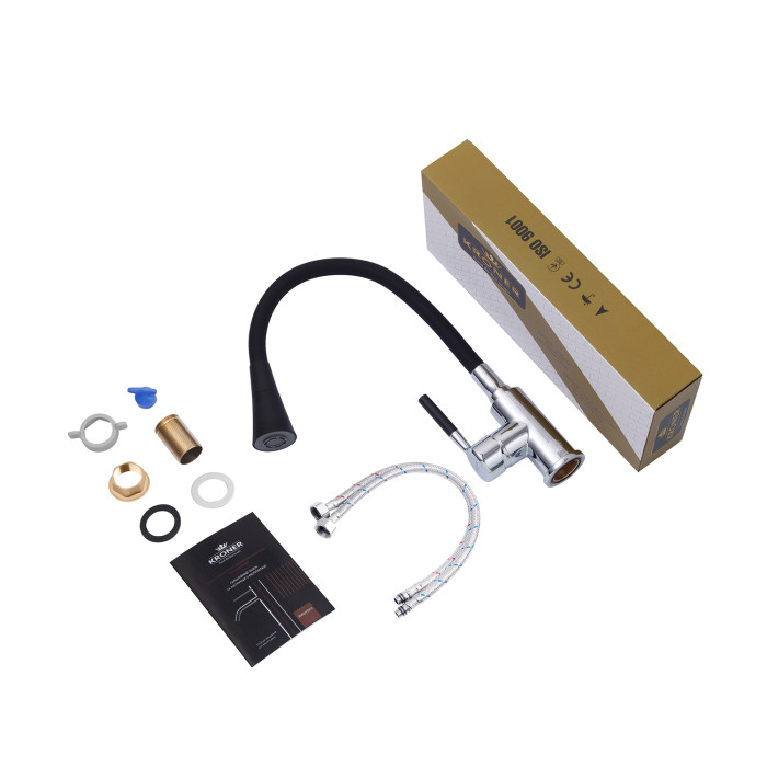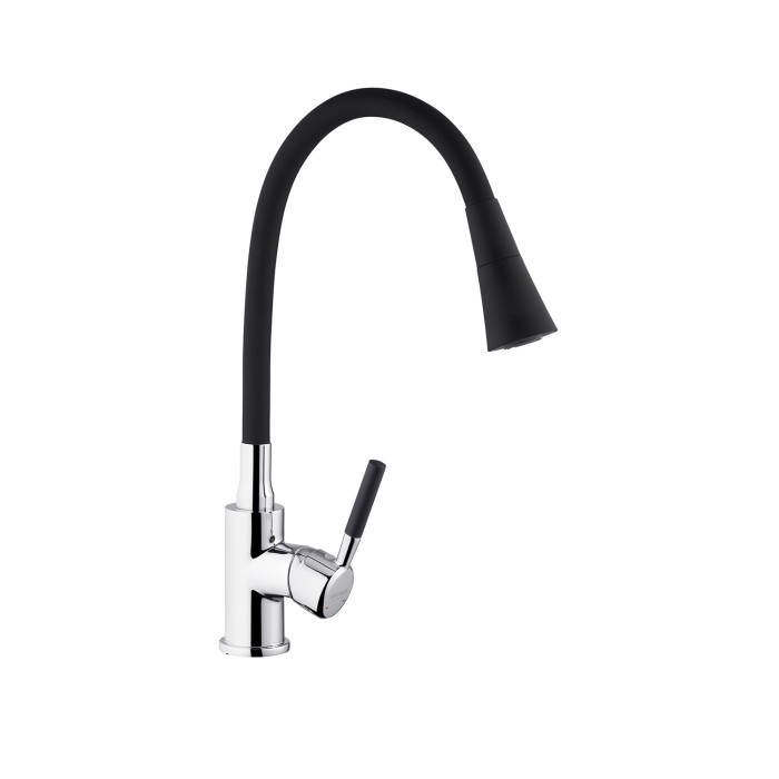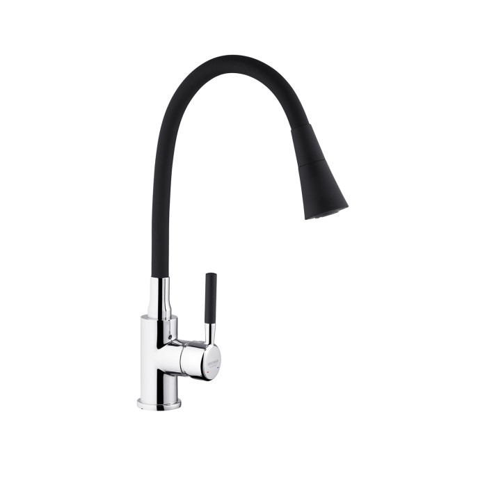Змішувач для кухні Kroner KRM Kuche - C132BLK - це стильний та функціональний варіант для вашої кухні. Виготовлений з високоякісного силуміну з силіконовим виливом, він поєднує в собі міцність і зручність в експлуатації. Одноважільне керування дозволяє з легкістю регулювати температуру та потік води.