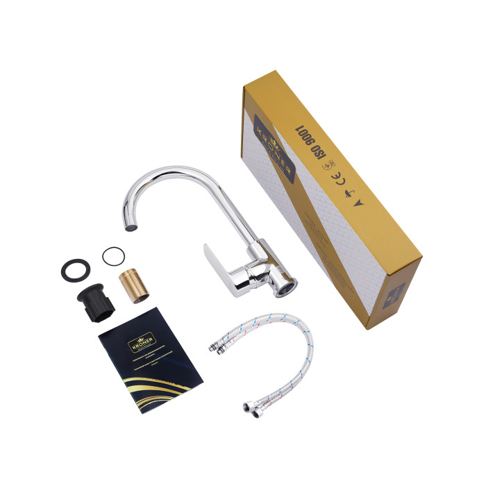 Змішувач для кухні Kroner KRM Main - C030 - ідеальний вибір для вашої кухні. Виготовлений з високоякісного силуміну, він гарантує міцність та довговічність. Має привабливий глянцевий хромований колір, що додає йому елегантності. Змішувач оснащений картриджним механізмом змішування, що дозволяє зручно регулювати температуру води. Його унікальна U-подібна форма виливу забезпечує зручність під час наповнення посуду або миття продуктів. Насолоджуйтесь комфортом і зручністю використання разом з Kroner.