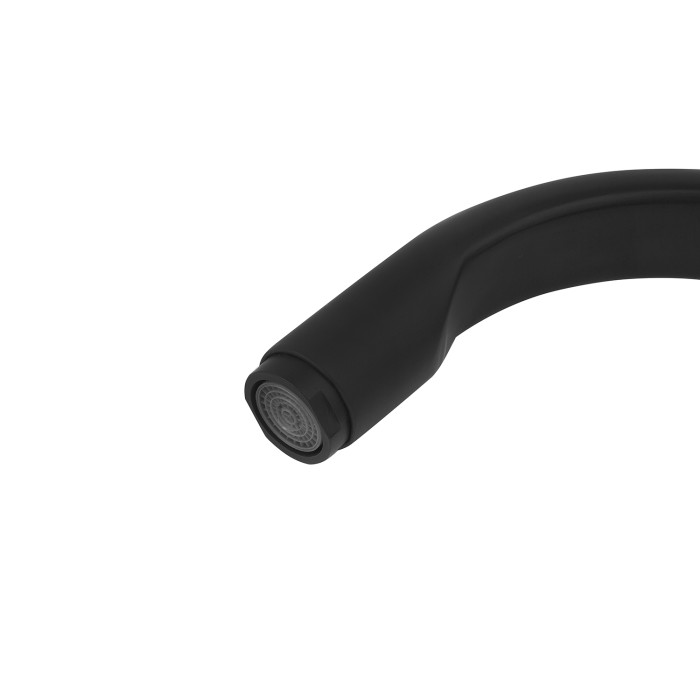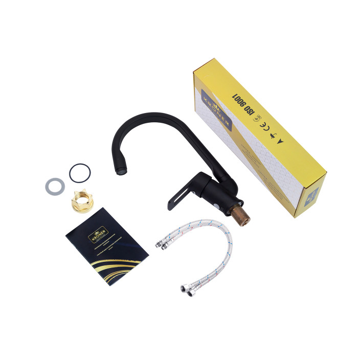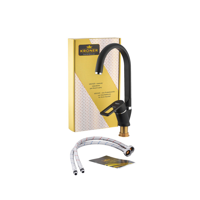 Змішувач для кухні Kroner KRM Zenda - SCH030 - ідеальний вибір для вашої кухні. Виготовлений з високоякісного силуміну, він гарантує міцність та довговічність. Має привабливий матовий чорний колір, що додає йому елегантності. Змішувач оснащений картриджним механізмом змішування, що дозволяє зручно регулювати температуру води. Його унікальна U-подібна форма виливу забезпечує зручність під час наповнення посуду або миття продуктів. Насолоджуйтесь функціональністю і стилем змішувача Kroner.
