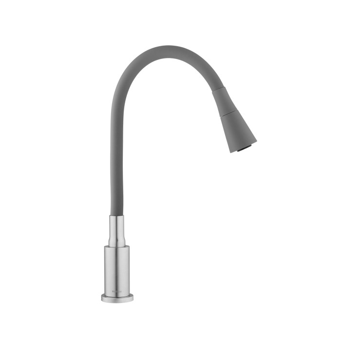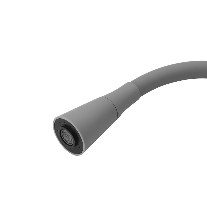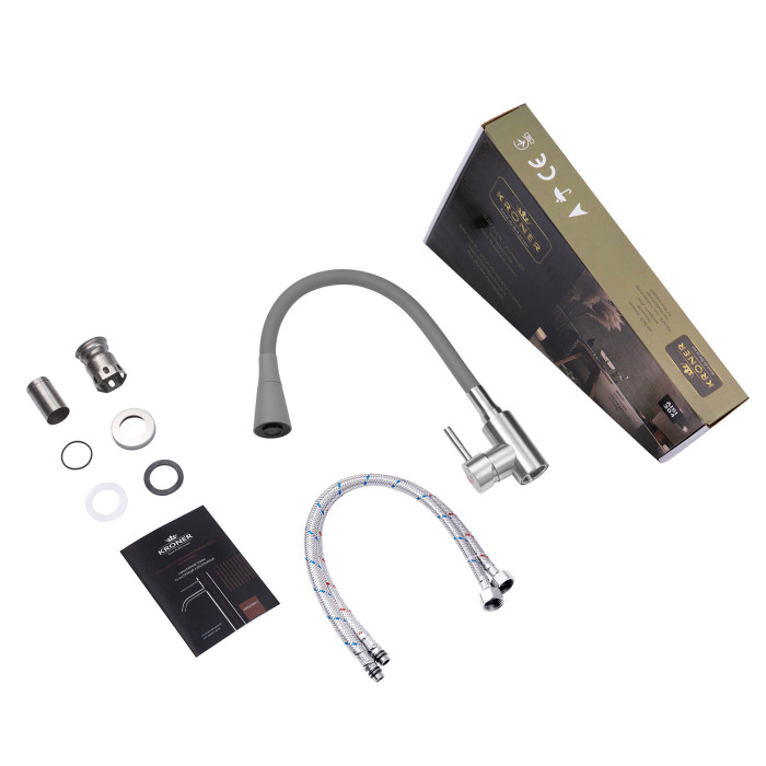 Kroner ESG031GRA - ідеальний варіант для тих, хто віддає перевагу стриманим і світлим тонам в інтер'єрі кухні. Змішувач виконаний в єдиній колірній гамі: сталевий корпус та сірий силіконовий вилив створюють лаконічний образ, який легко впишеться в сучасний або мінімалістичний інтер'єр.