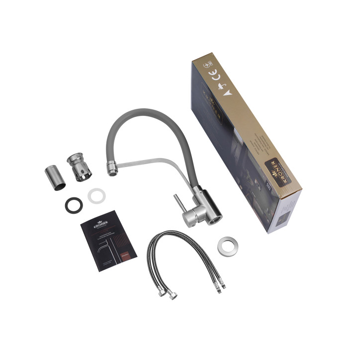 Змішувач для кухні Kroner KRP Edelstahl Klassisch - ESG03593GRAKroner KRP Edelstahl Klassisch - ESG03593GRA — стильний кухонний змішувач із сірим гнучким гусаком, створений для комфортного щоденного використання. Міцний ... Читать далее...