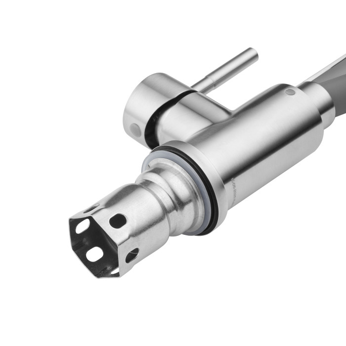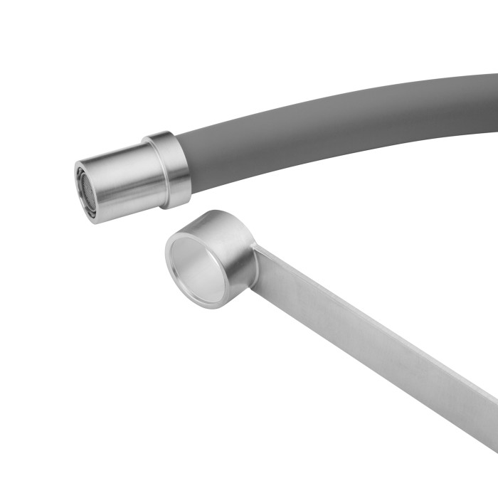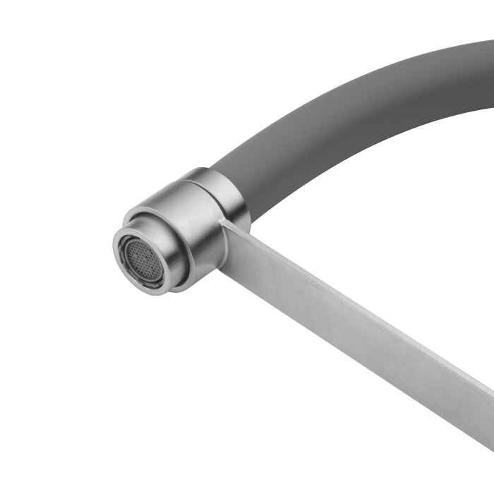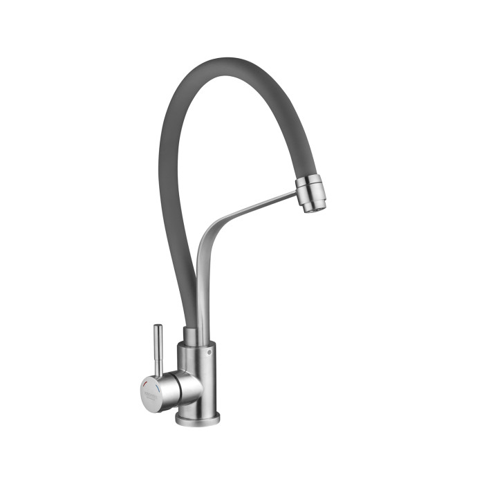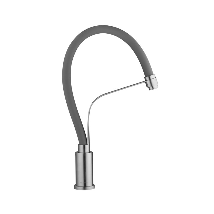 Kroner KRP Edelstahl Klassisch - ESG03593GRA — стильний кухонний змішувач із сірим гнучким гусаком, створений для комфортного щоденного використання. Міцний корпус із нержавіючої сталі забезпечує надійну роботу протягом багатьох років, а гнучкий вилив дозволяє легко регулювати напрямок потоку води.