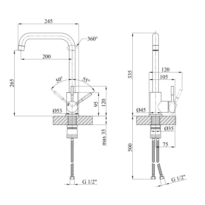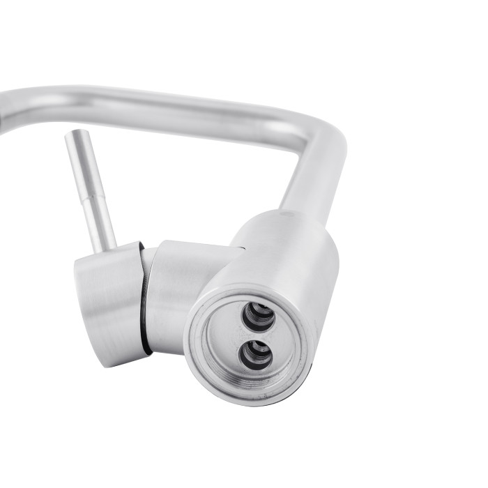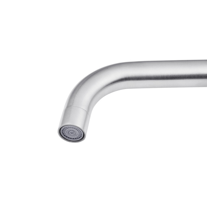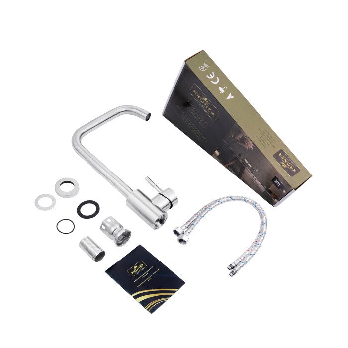Кухонні змішувачі від Kroner – це німецька якість, технологія та надійність. Сучасний дизайн стане вдалим доповненням інтер’єру кухні. Виготовленні з якісних матеріалів, що не піддаються корозії, легкість у збірці не завдасть клопоту при монтажу та використанні. Мають поворотний вилив і встановлюється на один отвір із підведенням води за допомогою гнучких шлангів М10х1/2". Шланги для підключення входять у комплект. Данна модель виготовлена з нержавіючої сталі AISI 304.