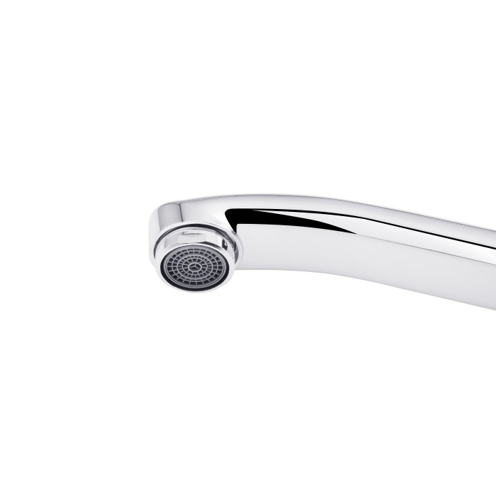 Змішувач для кухні Kroner KRP Konstante - C030 - ідеальний вибір для вашої кухні. Виготовлений з високоякісної латуні, він гарантує міцність та довговічність. Має привабливий глянцевий хромований колір, що додає йому елегантності. Змішувач оснащений картриджним механізмом змішування, що дозволяє зручно регулювати температуру води. Його унікальна V-подібна форма виливу забезпечує зручність під час наповнення посуду або миття продуктів. Насолоджуйтесь функціональністю і стилем змішувача Kroner.