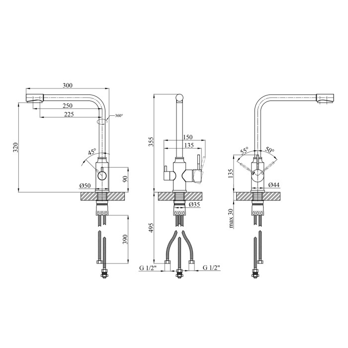 Змішувач, гнучка підводка, кріплення, інструкція.