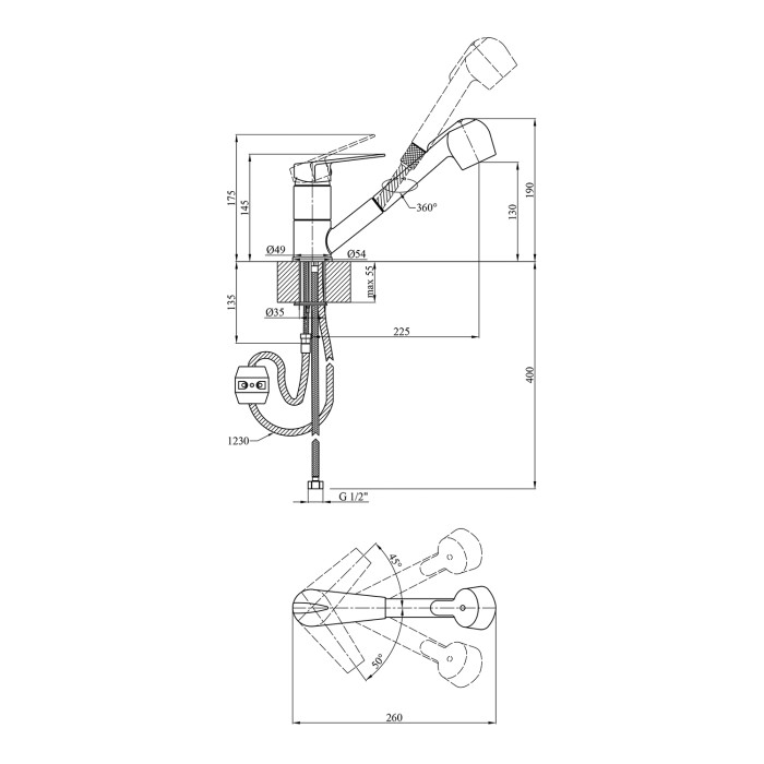 Змішувач для кухні з висувним виливом Kroner KRM Odra - C030-T