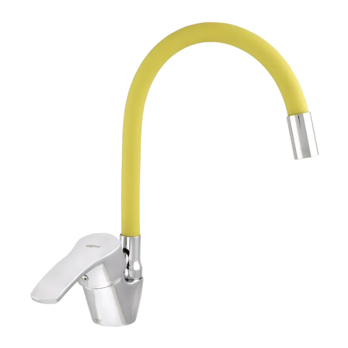 Змішувач для кухні Zerix YUB 279 с жовтим гнучким виливом (ZX0440)