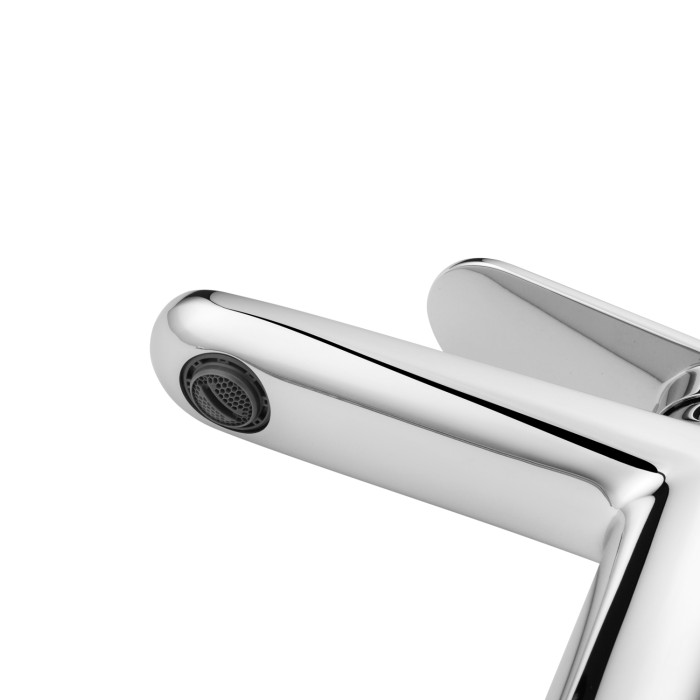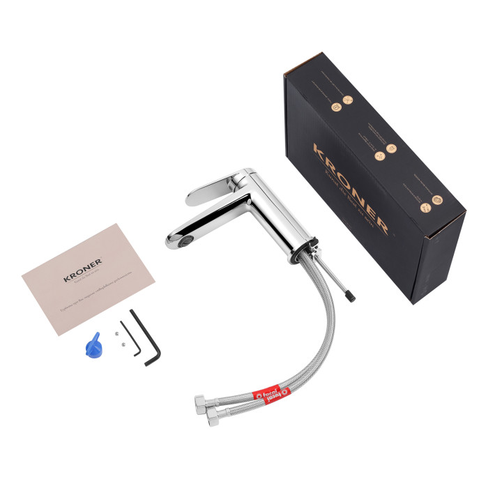 Змішувач для раковини Kroner Element 211110-0101 (хром) — елегантне і функціональне рішення для ванної кімнати в сучасному стилі. Дзеркально-гладка глянцева поверхня надає змішувачу виразний блиск і підкреслює чистоту інтер'єру, візуально роблячи простір більш, світлим і акуратним.