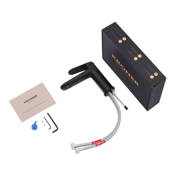 Змішувач для раковини Kroner Element 211110-3801 (чорний) — елегантний і функціональний змішувач, виконаний в глибокому чорному кольорі з матовим покриттям, яке надає ванній кімнаті сучасний і благородний вигляд. Матова поверхня не тільки естетична, але і практично непомітна для відбитків пальців і слідів води, що полегшує догляд.