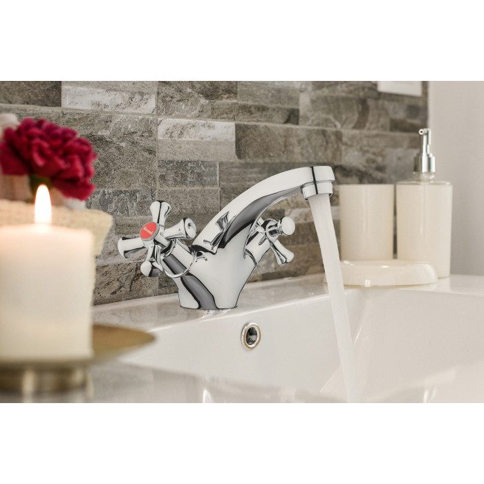 Змішувач для раковини Kroner KRM Rhein - C010 - стильний та практичний вибір для вашої ванної кімнати. Виготовлений з високоякісного силуміну, він гарантує довговічність та надійність. Привабливий хромований колір додає йому елегантності та сучасного вигляду. Механізм змішування кран-букса забезпечує плавне регулювання температури води. Врізний спосіб монтажу дозволяє зберігати естетичний вигляд раковини, а глянцева поверхня додає блиску і гарантує легку очистку. Змішувач Kroner - це стильний акцент, що надасть вашому дизайну особливої гармонії і розкоші.