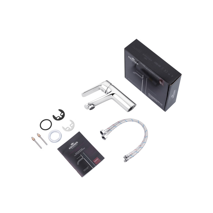 Змішувач для раковини Kroner KRP Dorn - C010 - це високоякісне та стильне рішення для вашої ванної кімнати. Виконаний із міцної латуні, цей одноважільний змішувач відрізняється довговічністю та надійністю. Хромоване глянсове покриття надає виробу елегантного вигляду, а його компактні розміри дозволяють гармонійно вписатися в інтер'єр.