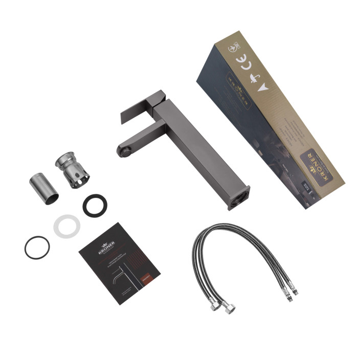 Змішувач для раковини Kroner KRP Edelstahl Kubus – PVD010-3: сучасний стиль і функціональність в одному образі.