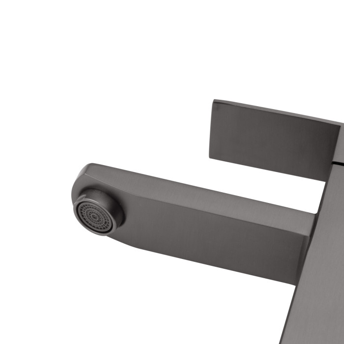 Високий вилив 200 мм забезпечує зручність використання, а його графітовий матовий колір надає вашій ванній кімнаті елегантність і вишуканість. Матеріал виготовлення – нержавіюча сталь – гарантує міцність і тривалий термін служби.