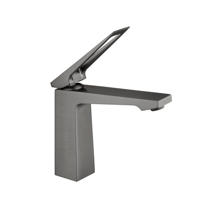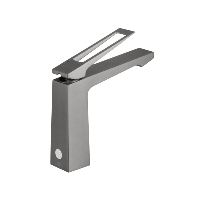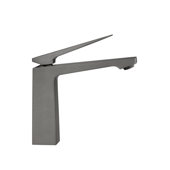 Змішувач виконаний з високоякісної латуні та має графітове матове покриття, яке надає елегантність і забезпечує стійкість до подряпин і корозії. Мінімалістична форма з чіткими лініями гармонійно поєднується з сучасними інтер'єрами ванної кімнати.