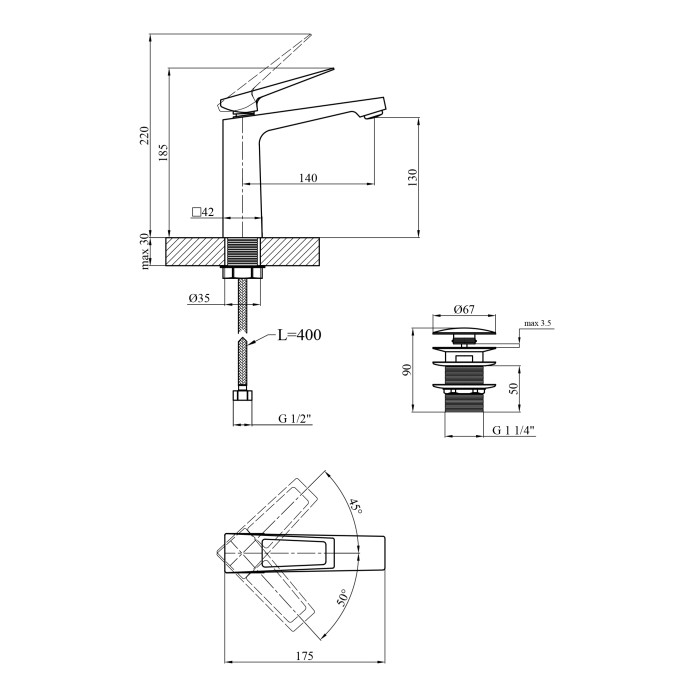 Змішувач, донний клапан, гнучке підведення, кріплення, інструкція.