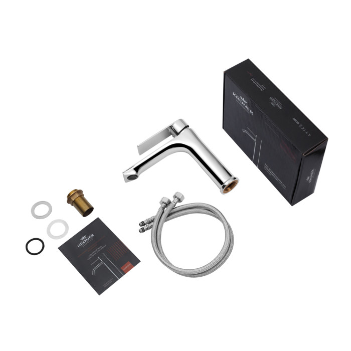 Змішувач для раковини Kroner KRP Jena-C010 (хром) — сучасний і функціональний змішувач з класичним хромованим покриттям, який надає ванній кімнаті акуратний блиск і чистий візуальний образ. Елегантний дизайн виробу легко вписується в різні стилі інтер'єру — від класики до мінімалізму.