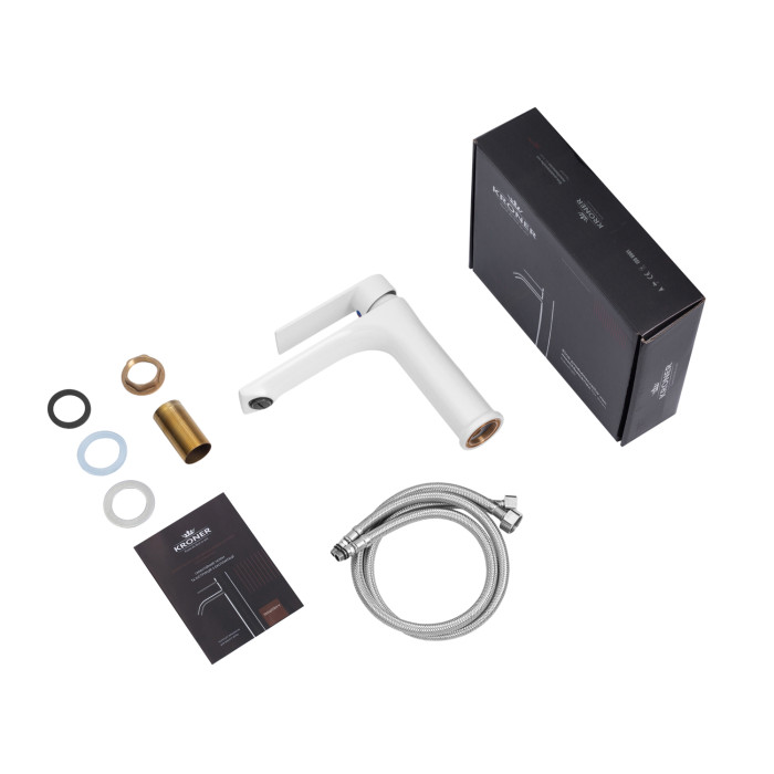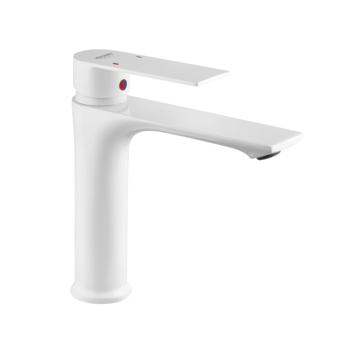 Змішувач для раковини Kroner KRP Jena-W010 (білий) – стильний та сучасний змішувач, виконаний у білому кольорі, що ефектно підкреслює інтер'єр ванної кімнати. Біле покриття надає моделі акуратного і свіжого вигляду, гармонійно доповнюючи інтер'єр у стилях мінімалізм, модерн або скандинавський дизайн.
