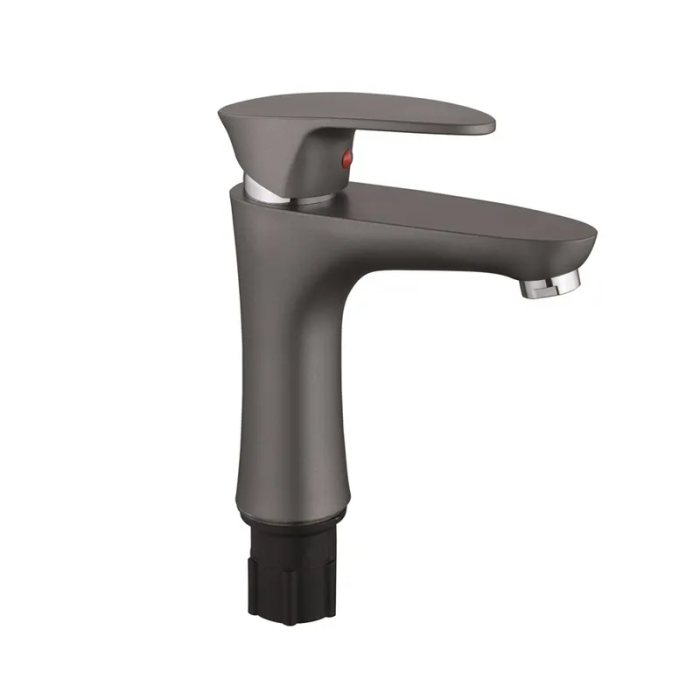 Змішувач для умивальника Plamix CEZAR-001 SET Graphite з підведенням (PM0688)