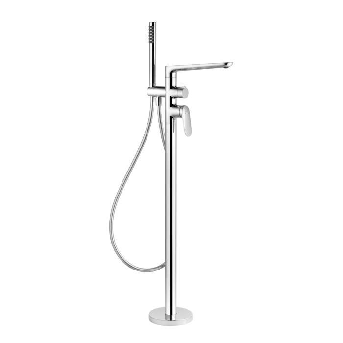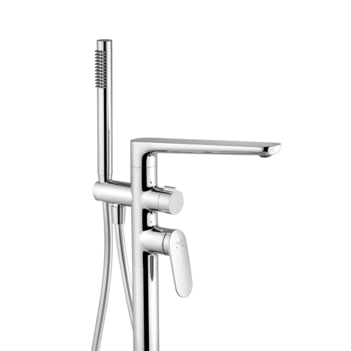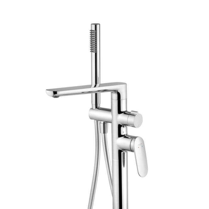 Підлогова конструкція робить змішувач ефектним центральним елементом ванної зони, особливо при установці поруч з окремою ванною. Змішувач оснащений ручною лійкою, яка забезпечує зручність при ополіскуванні, митті або інших водних процедурах, роблячи використання більш універсальним і комфортним.