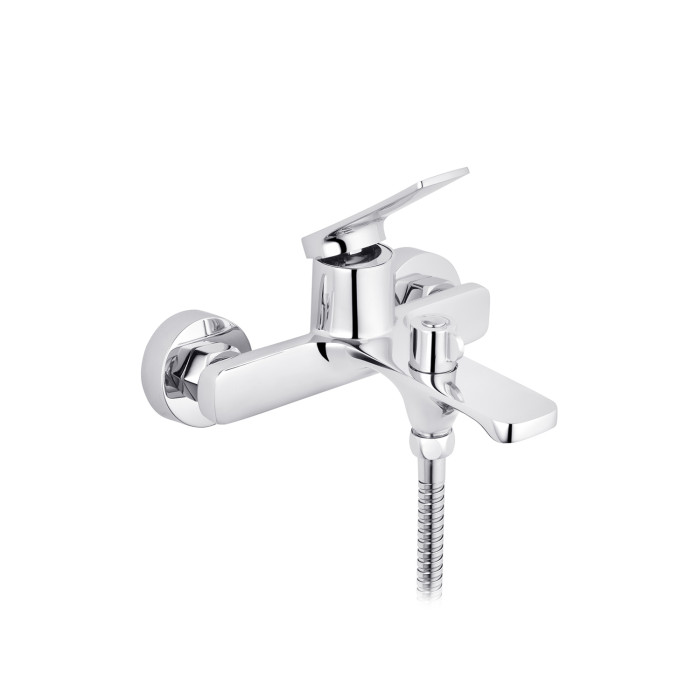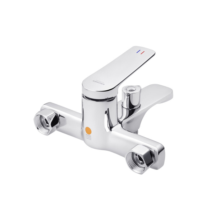 Змішувач виготовлений із міцної латуні, що гарантує довговічність і стійкість до корозії. Глянцева поверхня в хромованому кольорі надає виробу сучасного та витонченого вигляду, який ідеально доповнить будь-який інтер’єр. Настінний спосіб монтажу забезпечує надійність установки та зручність у користуванні.