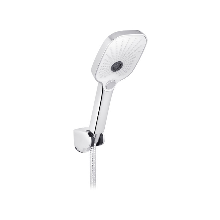 Прямокутна лійка для ручного душу розміром 100x122 мм із трьома режимами струменя та вбудованим аератором для економії води.