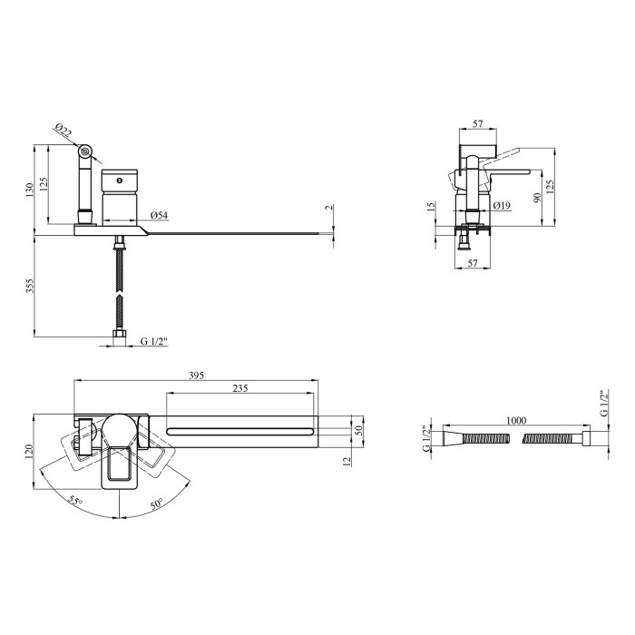 Змішувач, душовий шланг, лійка для гігієнічного душу, рейка, кріплення, інструкція.