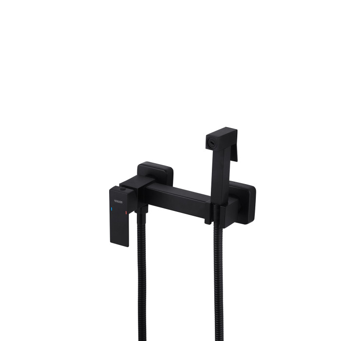 Змішувач має стильний сучасний дизайн із чорною матовою поверхнею, який додасть елегантності у ванну кімнату. Спосіб монтажу – настінний, що забезпечує зручність використання.