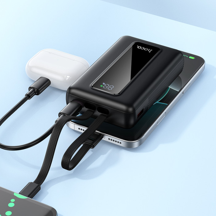 Зовнішній акумулятор HOCO J162A Full power 22.5W+PD20W fully compatible power bank with two cables(20000mAh) Black