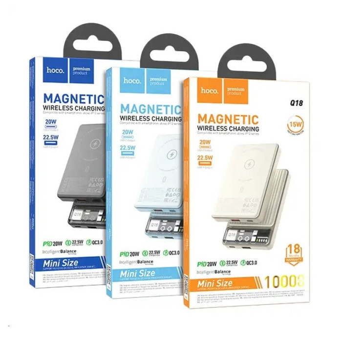 Зовнішній акумулятор HOCO Q18 Tourer 22.5W fully compatible power bank with magnetic fast charging(10000mAh) Milky White