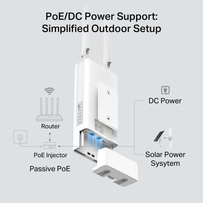 TP-LINK TL-MR100-Outdoor – зовнішній 4G/LTE маршрутизатор для стабільного бездротового доступу до інтернету. Пристрій підтримує мобільні мережі 4G та 3G і роздає Wi-Fi зі швидкістю до 300 Мбіт/с на частоті 2,4 ГГц. Міцний корпус дозволяє використовувати маршрутизатор на відкритому просторі в різних погодних умовах. Підтримка PoE та живлення DC спрощує встановлення. Достатньо вставити SIM-карту для початку роботи.