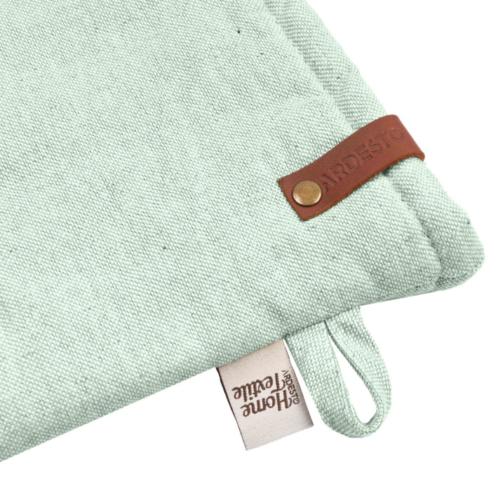 Рукавичка ARDESTO Oliver – незамінний помічник під час приготування! Виготовлений із якісної 100 % бавовни, виріб має розмір 18 × 30 см і виконаний у яскравому кольорі аквамарин. Ватиновий наповнювач – запорука безпеки, адже надійно захистить від впливу високих температур. Для збереження первинного вигляду рукавички варто дотримуватися рекомендацій щодо догляду: прати в машині за делікатного режиму (30 °C); не сушити в сушильній машині, а тільки у вертикальному положенні; прасувати за температури до 150 °C; також заборонено відбілювання та хімчистка.
