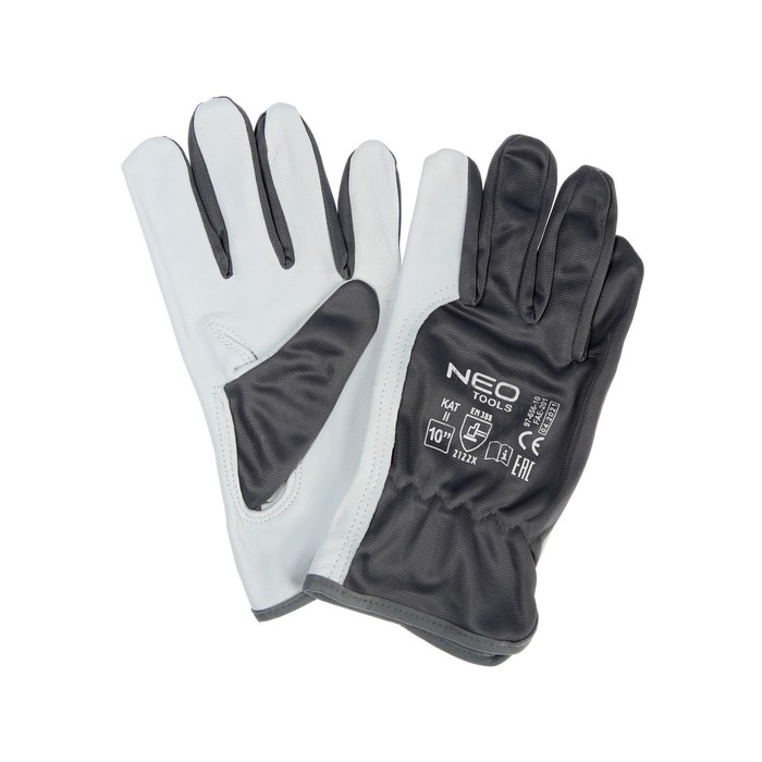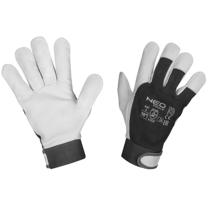 Рукавички робочі Neo Tools, козяча шкіра, фіксація зап’ястя, р.10, чорно-білий
