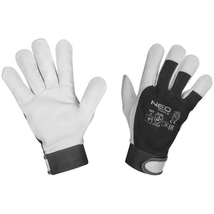 Рукавички робочі Neo Tools, козяча шкіра, фіксація зап’ястя, р.9, чорно-білий