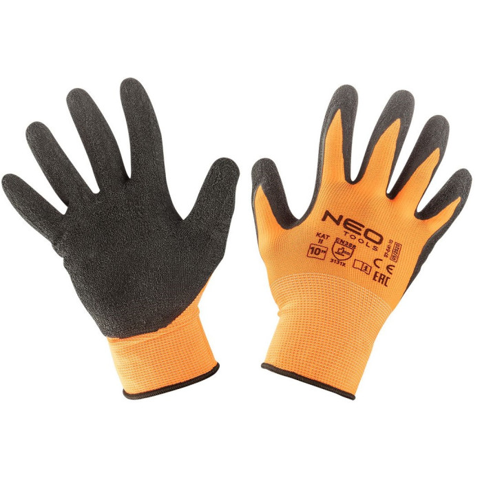 Рукавички робочі Neo Tools, латексне покриття, поліестер, р.10, помаранчевий