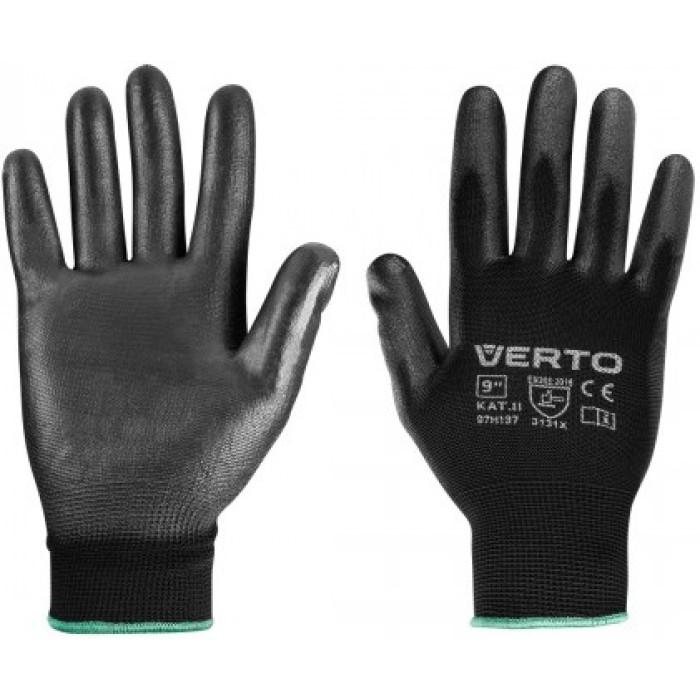 Рукавички робочі Verto, поліуретанове покриття, р.9, чорний