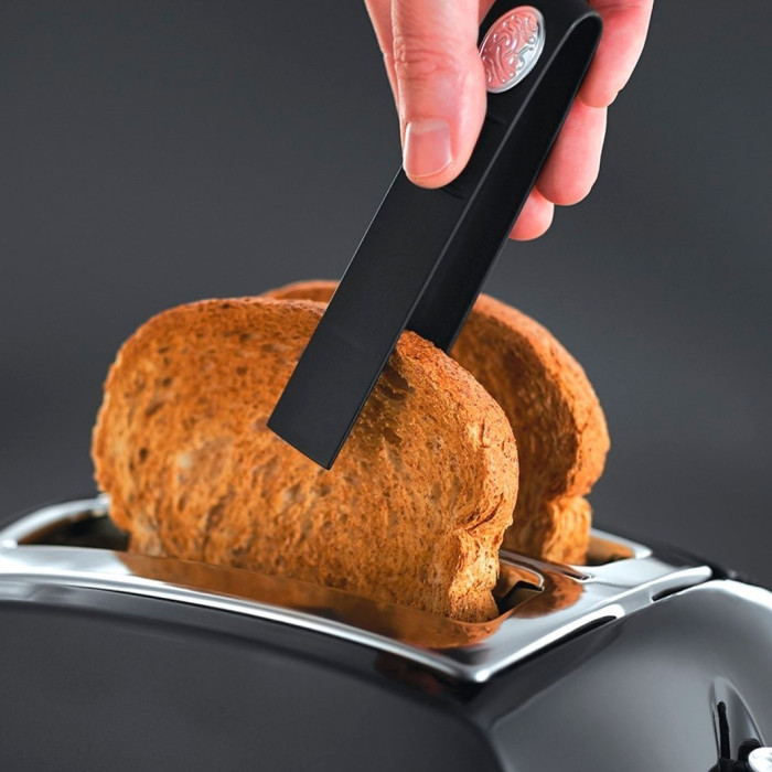 Не тільки функціональність, але і зовнішній дизайн роблять тостер Textures Plus особливим. Поєднання матових і глянсових поверхонь з хромованими елементами корпусу тостера чудово підійдуть під будь-який кухонних гарнітур. Корпус з високоякісного пластику чорного кольору з поєднанням матової і глянсової поверхонь і хромованими елементами.