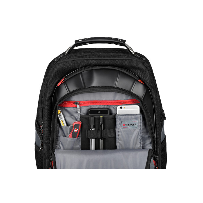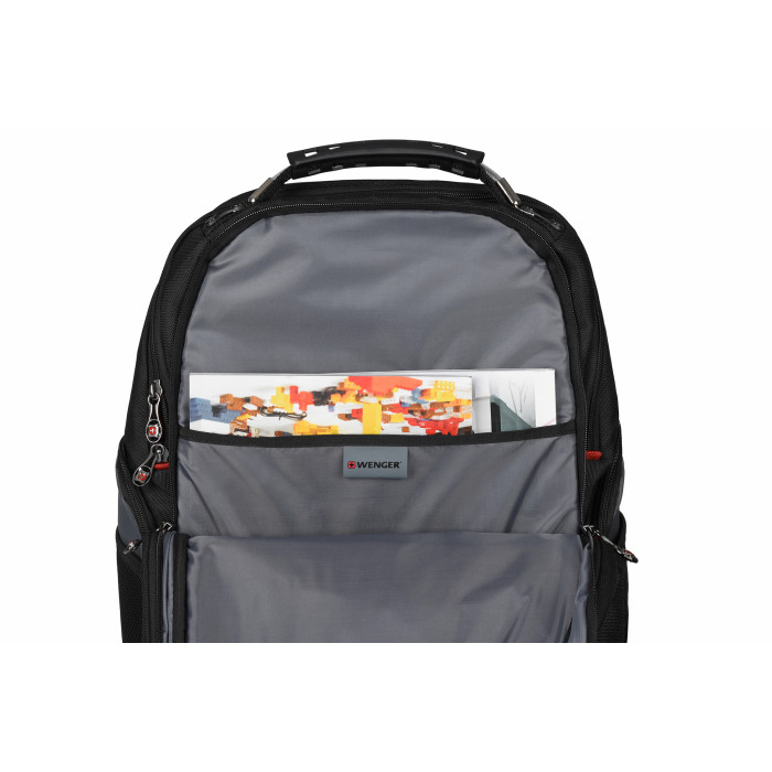Місткий і міцний міський рюкзак Wenger Pegasus 17" з великою кількістю відсіків: З великих відсіки на блискавках, 3 кишені на блискавках, 2 сітчасті кишені.