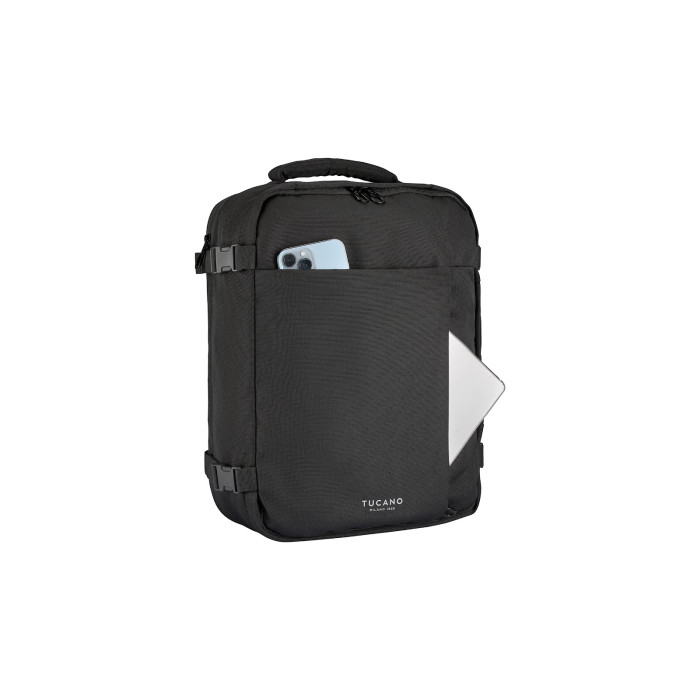 Дорожній рюкзак Tucano TUGO 3 M CABIN 16" створений для поїздок з ручною поклажею та відповідає вимогам авіаперевізників щодо габаритів. Конструкція третього покоління серії TUGO поєднує компактні розміри й продуману внутрішню організацію. Основне відділення об’ємом 23 л вміщує особисті речі та фіксує їх притискними пасками. Окремий відсік для ноутбука розміщений на задній стінці для швидкого доступу під час перевірок. Рюкзак доповнений елементами безпеки та зручності для подорожей різними видами транспорту.