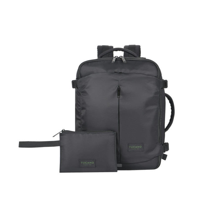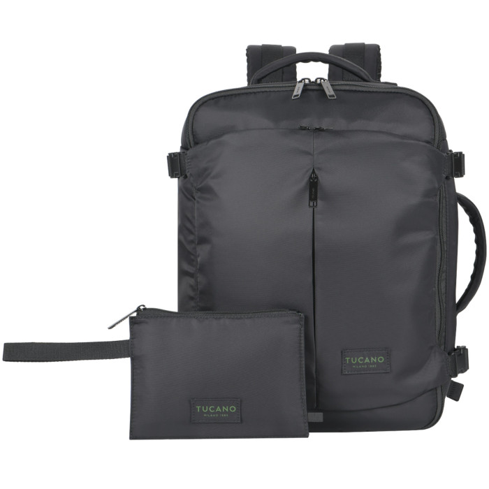 Tucano Tugò Premium M — дорожній рюкзак об’ємом 23 л, орієнтований на перельоти бюджетними авіакомпаніями. Формат CABIN відповідає вимогам до ручної поклажі lowcost-перевізників. Водовідштовхувальний нейлон виготовлений із застосуванням волокон з переробленого пластику. Внутрішня організація передбачає окремі зони для одягу, техніки та документів. Конструкція поєднує ергономіку та впорядковане зберігання речей у дорозі.